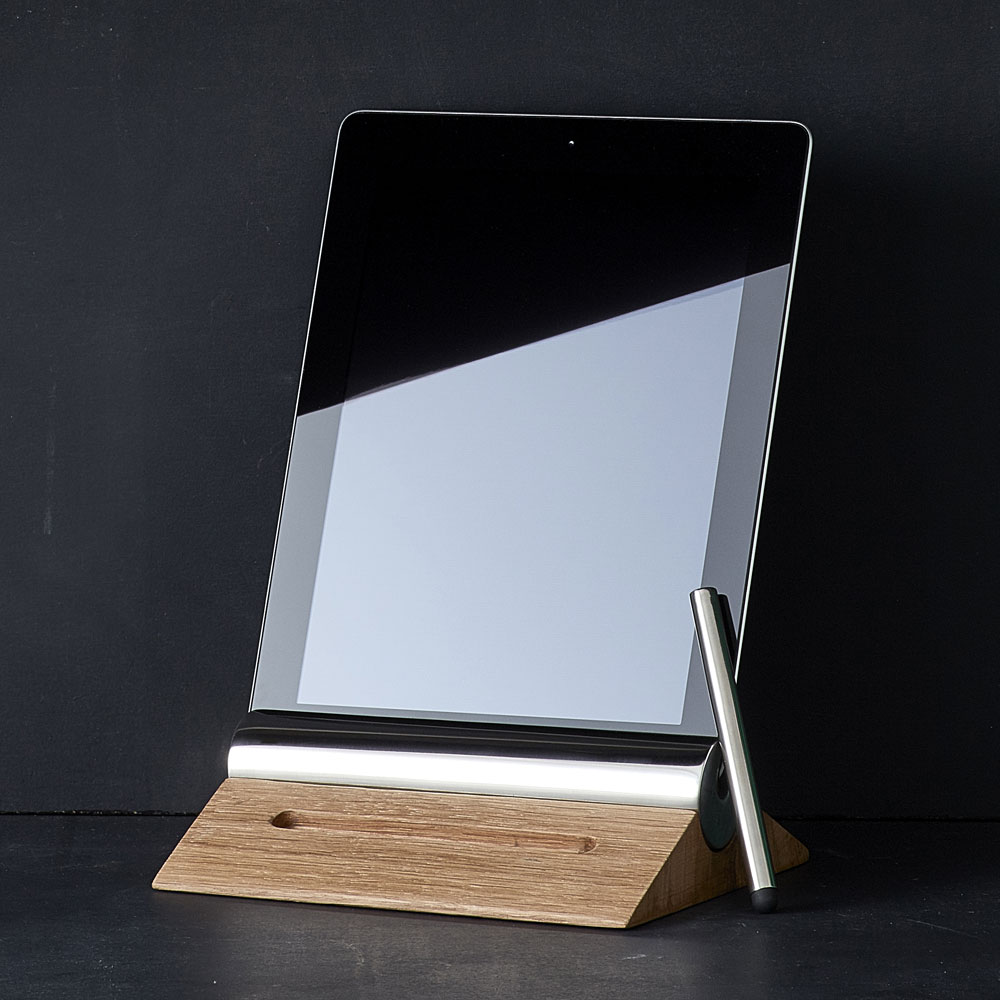 ギフト対応 暖かみのあるオーク材とスチールのバランスが洗練されたタブレッドスタンドです。