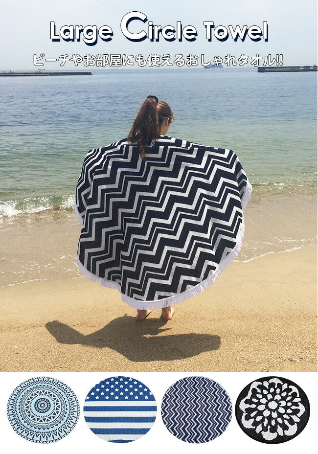 ラウンドビーチタオル ラグ サークルタオル フリンジ 円形 タオル ビーチタオル ラグマット ラウンド ビーチ タオル ラウンドタオル ビーチマット ラウンドビーチマット ソファーカバー レジャーシート 厚手 花柄 アメリカ 幾何学 リゾート 海 ボーダー ストライプビーチ・ピクニック・お部屋にも使える!今話題のラウンドビーチタオル 商品詳細 世界中で大ブーム!雑誌も取り上げられてる今話題のラウンドビーチタオル♪