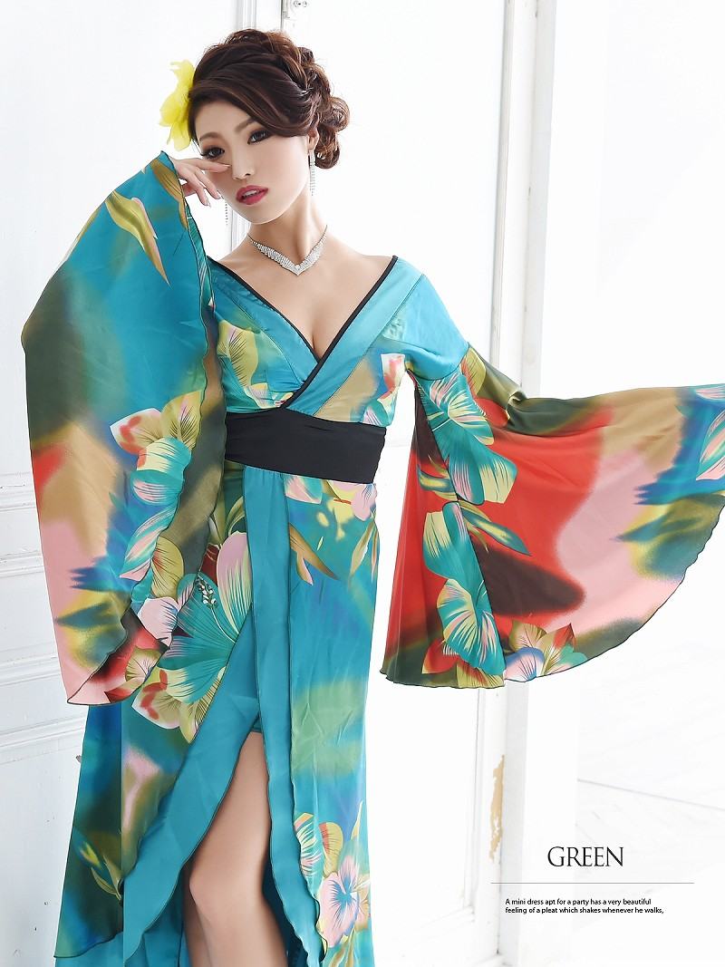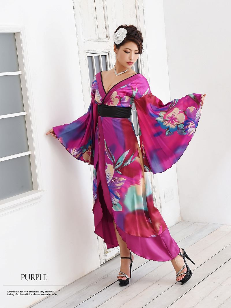 圧倒的な存在感の和柄ドレスがキャバクラやコンパニオンなどイベントのコスプレ衣装にも大活躍な着物キャバクラドレス。